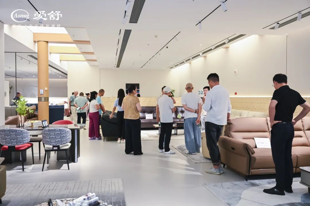 开业仪式后,嘉宾们在工作人员的引导下,沉浸式参观了爱舒5000㎡豪华展厅,亲手触摸品质家居的质感,试躺新品床垫感受柔软包裹,沉浸式体验“理想家”的模样。